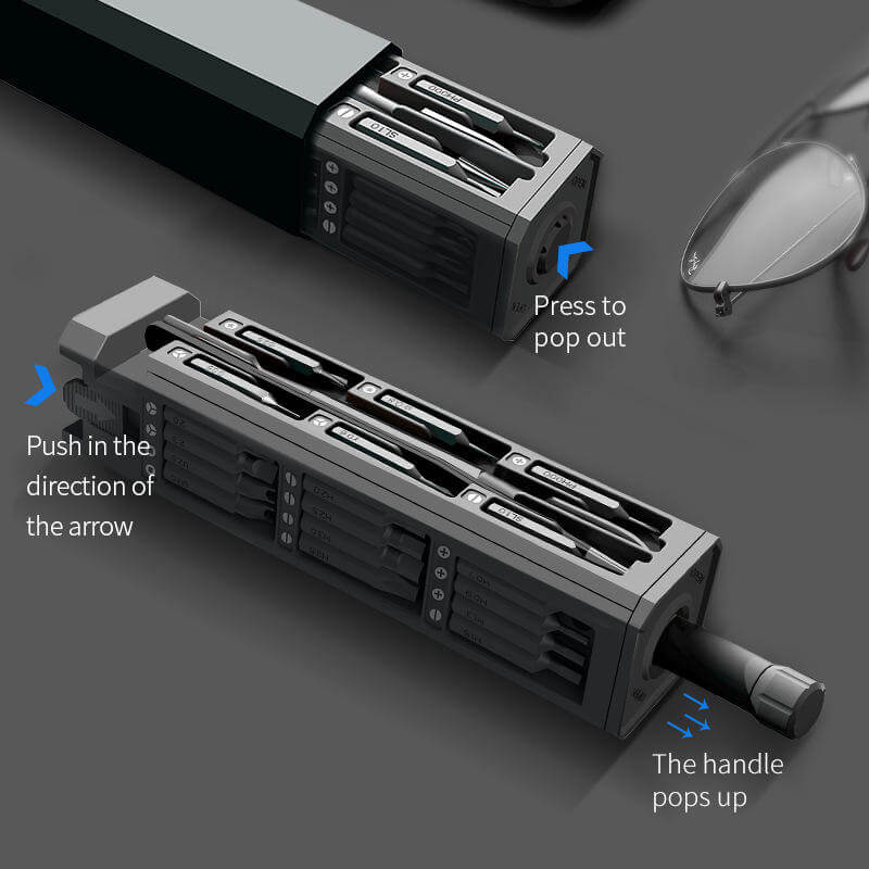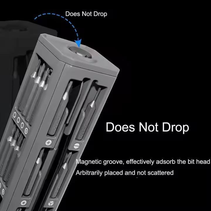 এই সেটে রয়েছে বিভিন্ন ধরনের ৪মিমি ম্যাগনেটিক বিট, যা স্ক্রু ধরতে ও খুলতে সাহায্য করে অত্যন্ত নির্ভুলভাবে। এর কমপ্যাক্ট ও বক্স টাইপ ডিজাইন বহন ও সংরক্ষণে খুবই সুবিধাজনক। হ্যান্ডেলটি আরামদায়ক গ্রিপ সহ তৈরি, ফলে দীর্ঘ সময় কাজ করলেও ক্লান্তি কম হয়।